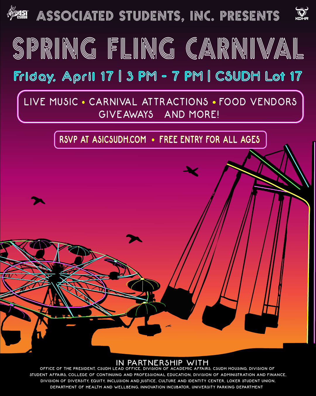 Spring Fling is taking place on-campus at CSUDH parking lot 17 from 3 – 7 PM.